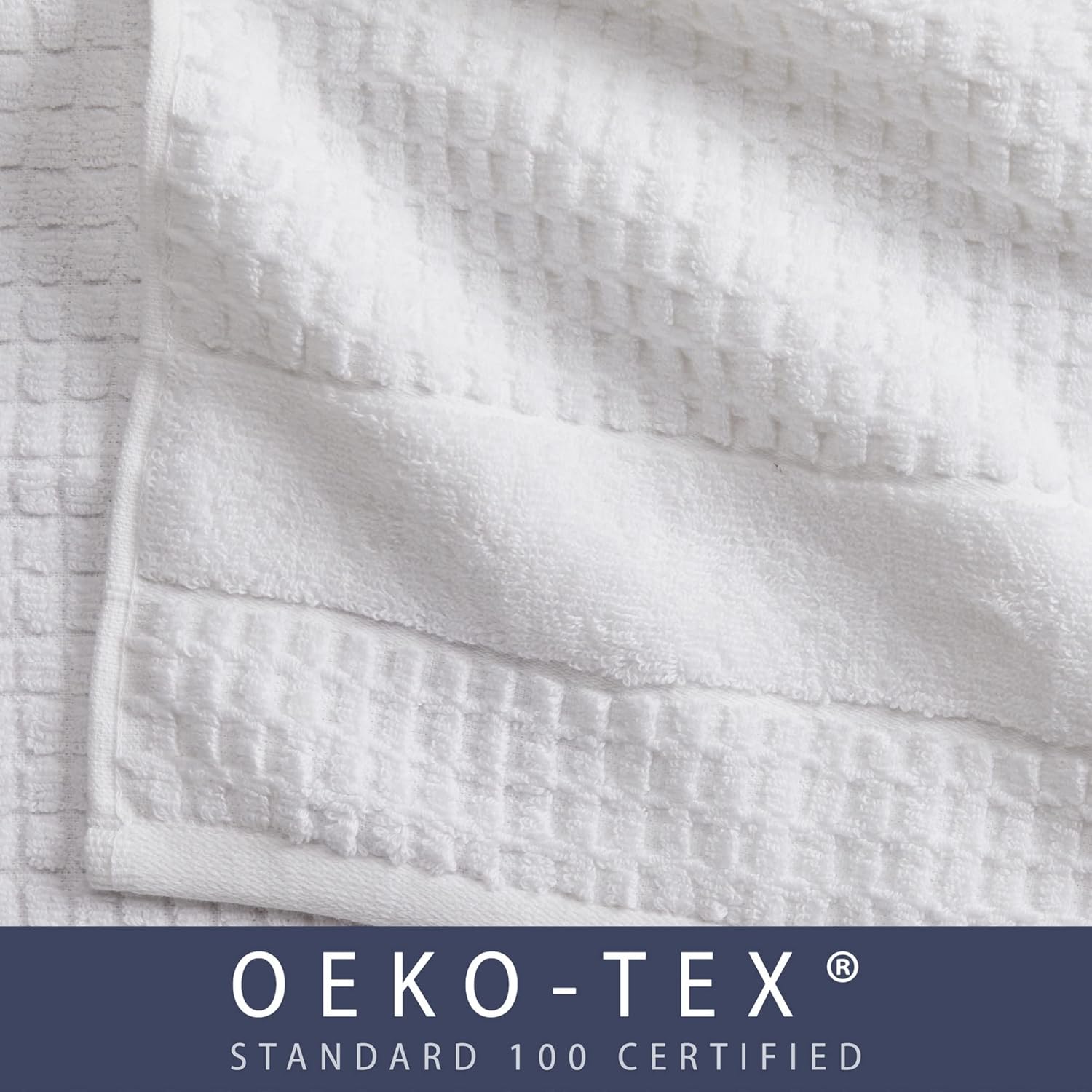 Made from premium quality 100% Cotton, these Harper Collection Bath Towel Sets by Market & Place provide ultimate softness, absorbency, and durability. Features a variety of classic solid hues with a textured waffle weave to add elegance and flair to any bathroom décor. These towels are super durable and machine washable to provide you with long lasting use and enjoyment; once washed, these towels fluff right back up. Makes a perfect gift for weddings, birthdays, holidays, and more! The 6-Piece Towel Set includes 2 Bath Towels (30" x 52"), 2 Hand Towels (16" x 28"), and 2 Washcloths (12" x 12"), the Bath Towel Set includes 4 Bath Towels (30" x 52"), and the Hand Towel Set includes 6 Hand Towels (16" x 28")