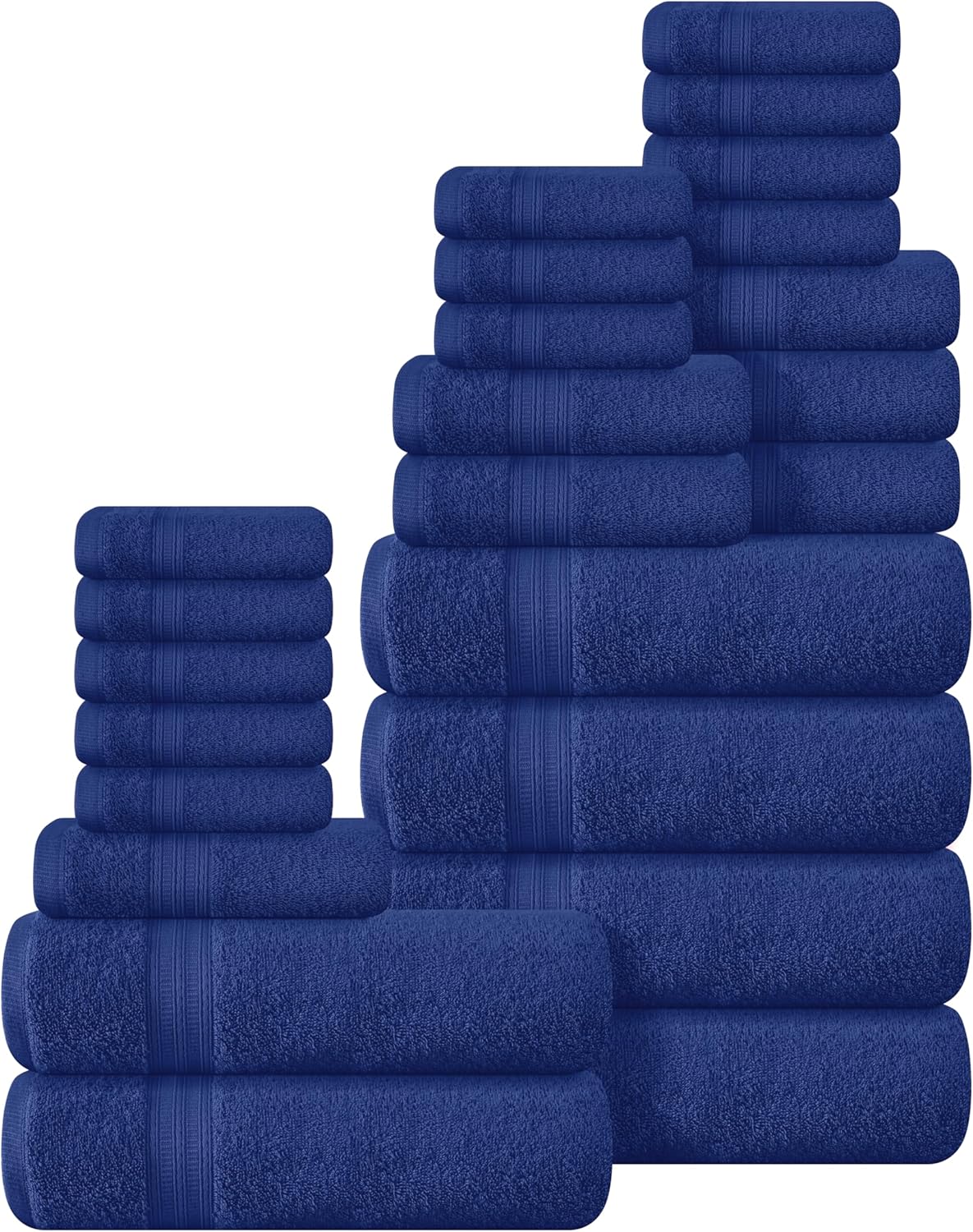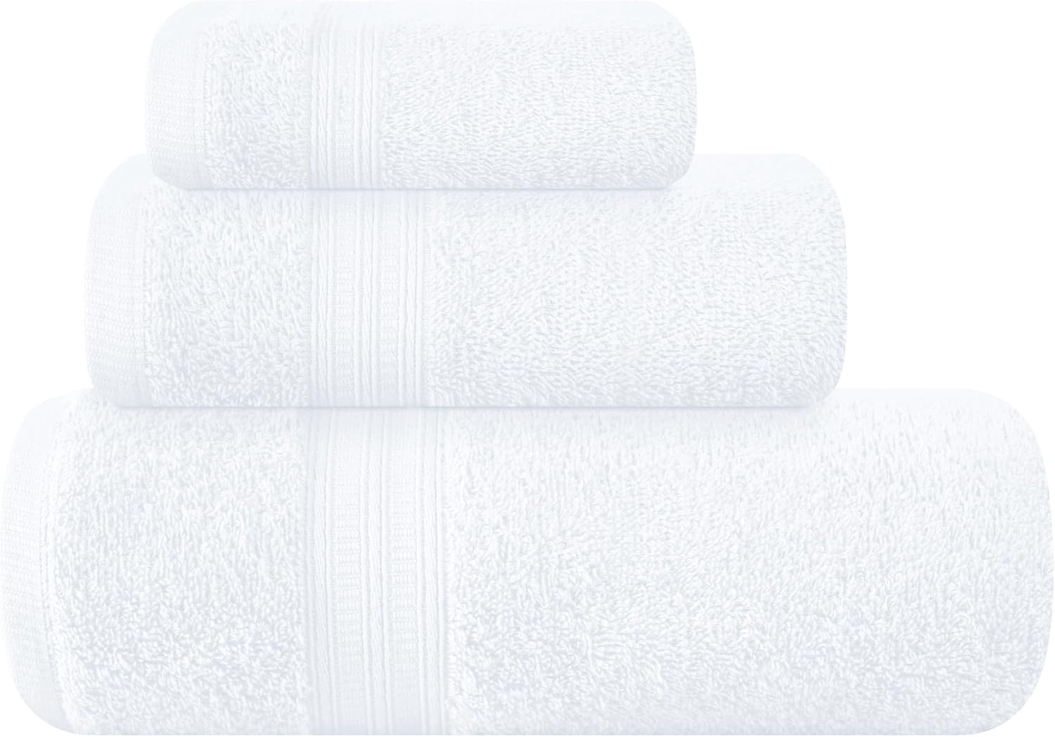 • Each set contains 6 oversized bath towels 27x54 inches, 6 hand towels 16x24 inches & 12 wash cloths 12x12 inches