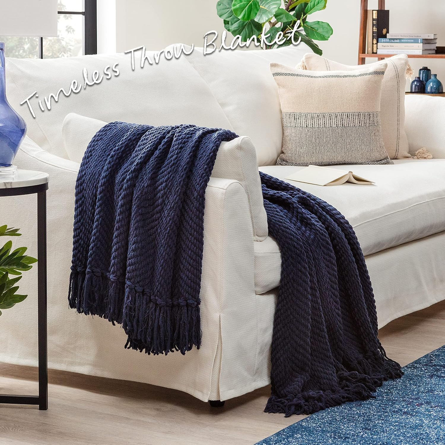 • Add Class with a Knitted Throw Blanket: Turn any room into a stylish space with this throw blanket’s chic and simple design