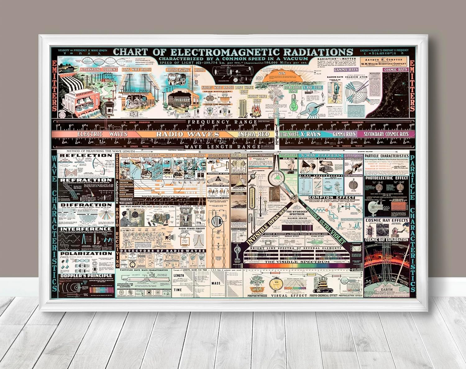 Chart of Electromagnetic Radiations - Vintage Science Physics Chart - Teacher Gift Wall Art - Electromagnetic Spectrum Poster Engineering (23"x33")