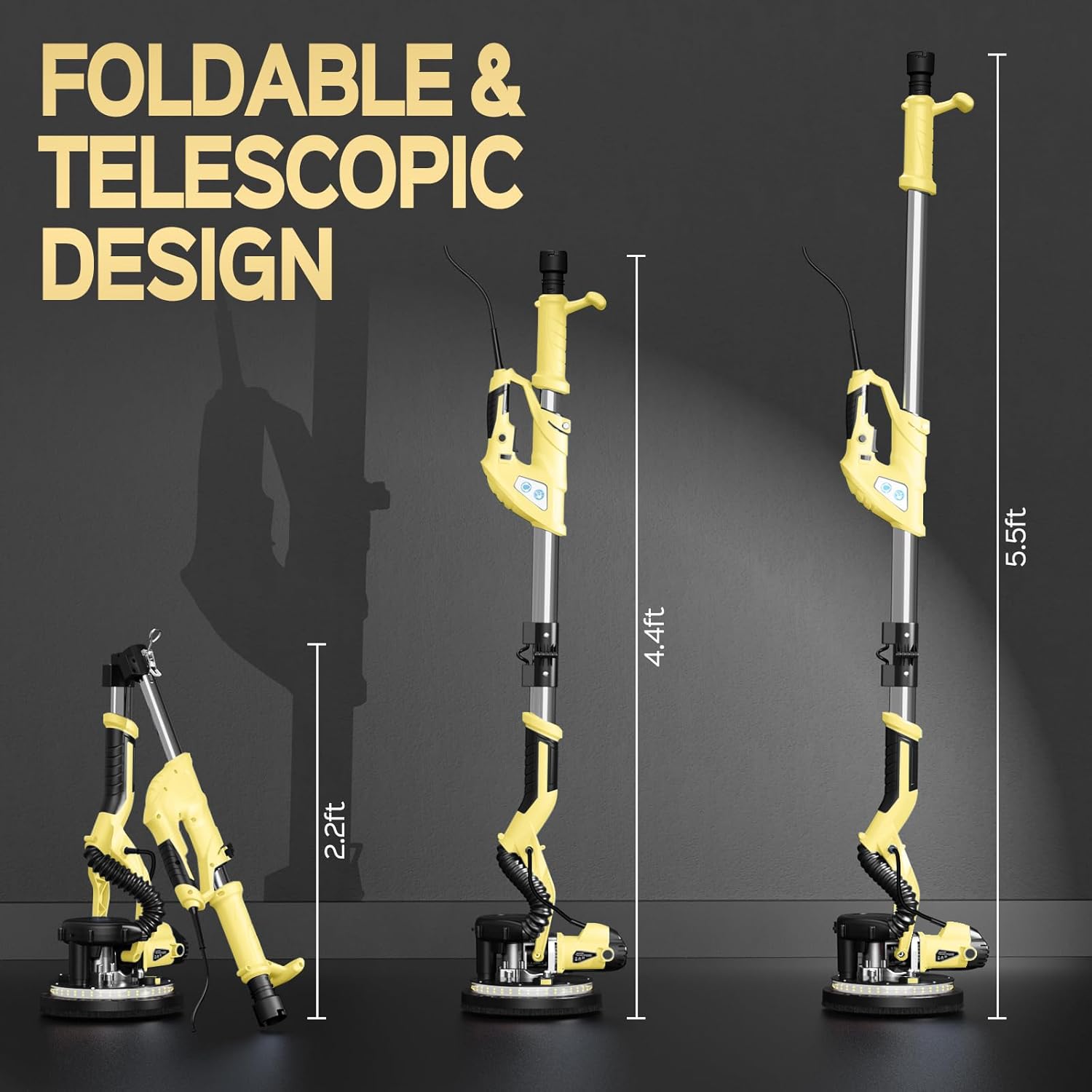 | Included Components | Electric Drywall Sander, 1* Extension Rod, 1* Flexible Dust Collection Hose, 1* Dust Collection Bag, 1* Carry Bag, 1* Dual Hook Tension Spring, 1* Work Gloves, 1* Manual, 1* Hexagonal Wrench, 1* Screwdriver, 2* Carbon Brushes, 4* Gaskets, 4* dust rings, 12* Sandpapers( 2*80/100/120/150/180/240 Grits) |