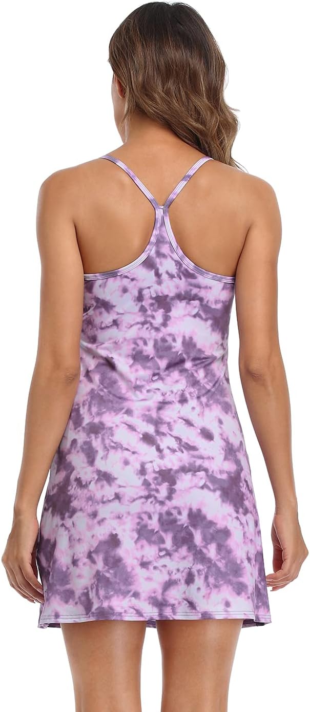 HDE Womens Exercise Workout Dress with Built-in Shorts Sleeveless Athletic Dresses for Golf Tennis