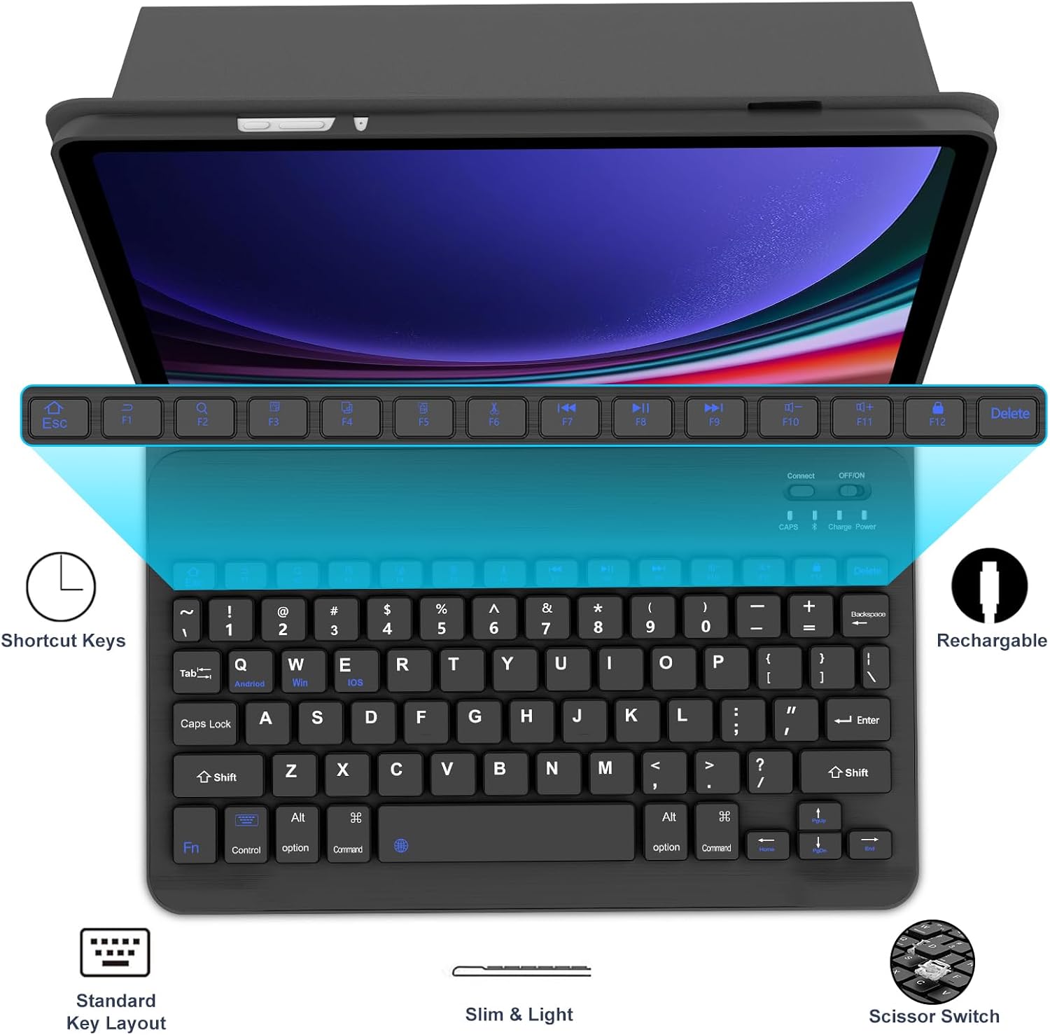 | Whats in the box | 1 x Case for Galaxy Tab S9/S10 plus, 1 x USB Cable, 1 x Wireless Keyboard, User Manual |