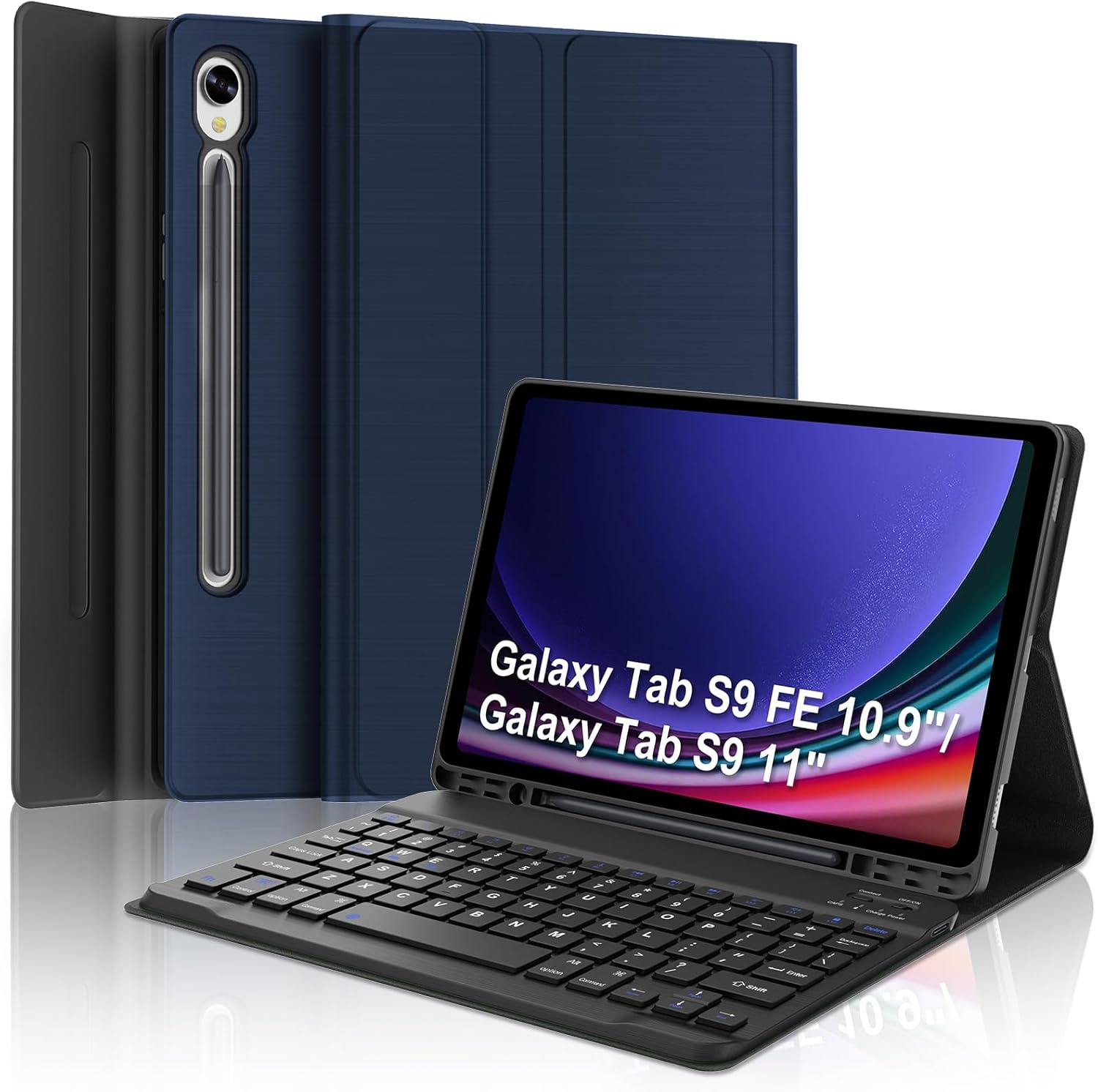 Keyboard Case for Samsung Tab S10+/S9 +/S9 FE+ 12.4 inch✔Compatible with Samsung Galaxy Tab S10+ 12.4 inch 2024(Model:SM-X820/SM- X826B/ SM-X828U)✔Samsung Galaxy Tab S9+ 12.4 inch 2023(Model:SM-X810/SM-X816B/SM-X818U)✔Samsung Galaxy Tab S9 FE+ 12.4 inch 2023(SM-X610/SM-X616B)Features:Built-in pen slot:Easy to store and remove your stylus.Heat Dissipateion:Designed honeycomb interior of the tablet case can help to dissipate heat for improved performance of your tablet.Multi-Angle Viewing:This keyboard case for samsung tablet 12.4 inch has anti-slip grooves to offer 3 multiple viewing angles.Auto Wake/Sleep Function:Open the case to wake up your tablet and close the case to put your tablet into sleep mode.Detachable Keyboard:Flexible to use within a distance of 10 meters.Type-C Cable:Rechargeable keyboard be fully charged in 2-3 hours by a Type-C fast charging cable.Shortcut Keys:There is a standard layout with 81 keys, which includes a row of shortcut keys such as Home,Search,Copy,Paste,Cut,Volume,Brightness,ect.Support 3 System:Press "Fn" and "Q/W/E" to switch 3 system:Android,Windows,IOS.How to Link the Keyboard1.Push the switch button to "ON“ position ,the breathing light of Power light up bule.2.Press FN+C, Bluetooth indicator will blink and wait for pairing.3.Search and click to connect "Bluetooth 5.0 keyboard" on your tablet .Package included:1 x Samsung Tablet 12.4-inch Case (tablet NOT included)1 x Wireless Keyboard with Trackpad1 x Type-C fast charging cable1 x User Manual√Provide 24-hour service,if you have any questions,feel free to contact us