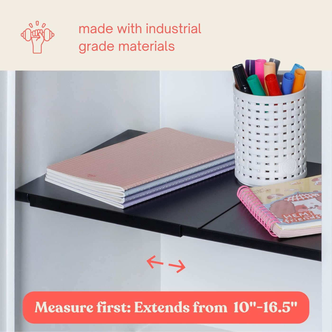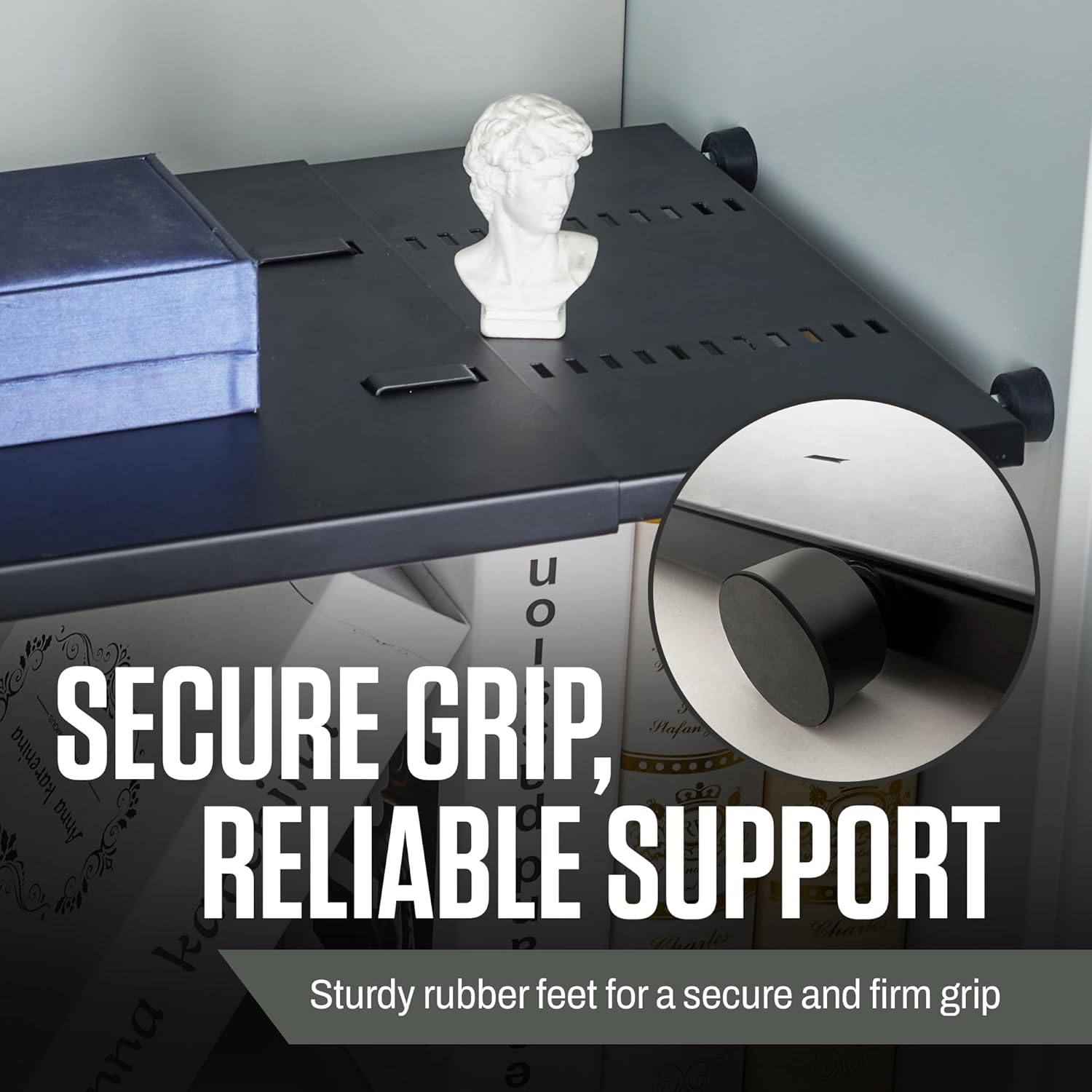 • Non-Slip Cabinet Tension Shelf: Our cabinet / locker shelf organizer is designed with permanently fixed rubber feet, ensuring your school locker shelf remains stable and can't 'slide down out of its feet'.