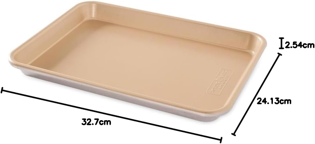 These Natural aluminum pans have premium gold nonstick interiors for easy release and cleaning. Our proprietary nonstick is time-tested and has proven to be especially durable and resistant to scratching. Encapsulated galvanized steel rims prevent warping. Made of aluminum for even heating and superior baking performance.