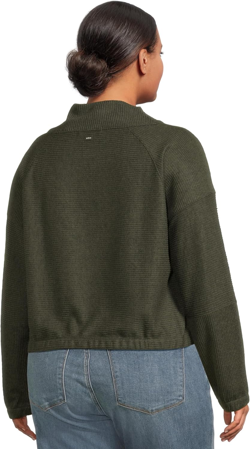 directional fabric inserts. • Cowel Neck • elasticated hem and cuffs • prAna logo, woven label at center back neck • Relaxed Fit