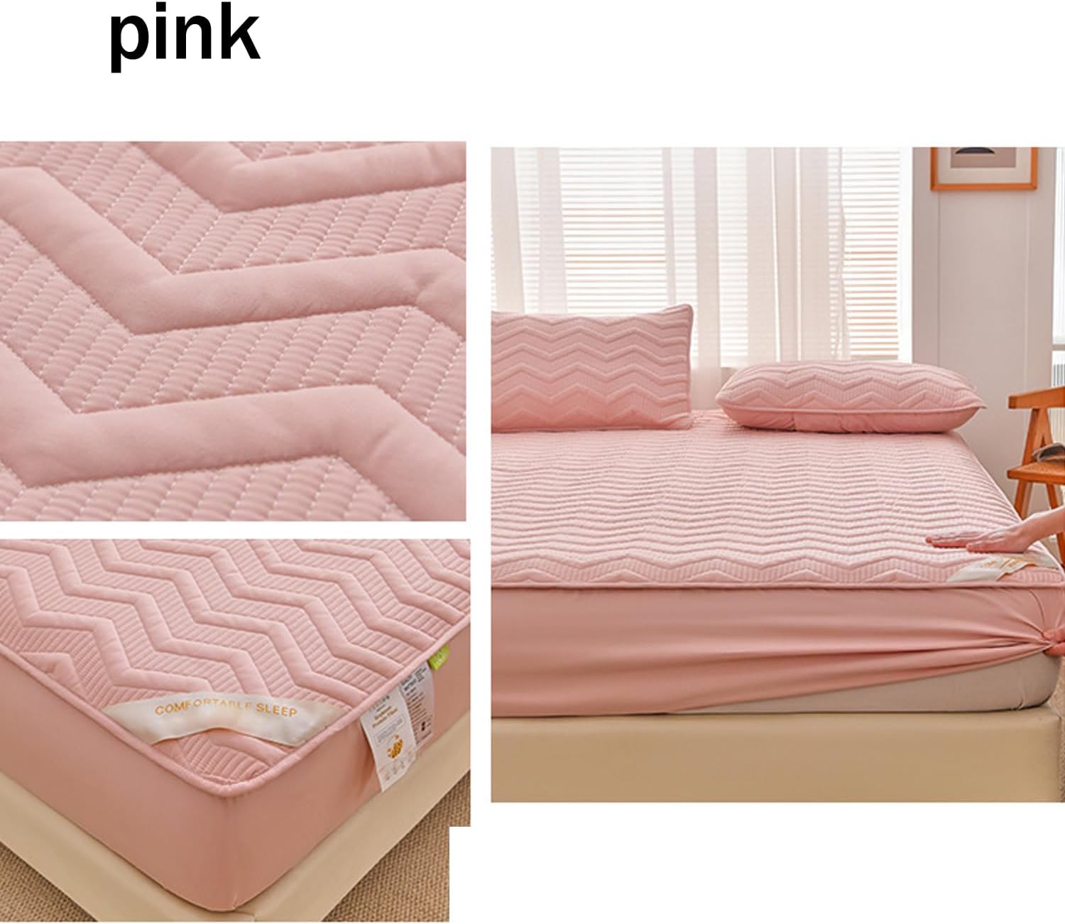 We use high-quality materials,Reasonable prices and good service,Provide customers with a relaxed and simple lifestyle,Welcome to choose our mattress protector.Fabric: High quality skin friendly fabric (100% polyester fiber)Printing and dyeing process: active printing and dyeingColor:grey, blue, green, pink, whiteSize:90*200cm(35*79in)twin120*200cm(47*79in)full150*200cm(59*79in)queen180*200cm(71*79in)king200*220cm(79*87in)The package includesMattress protector * 1