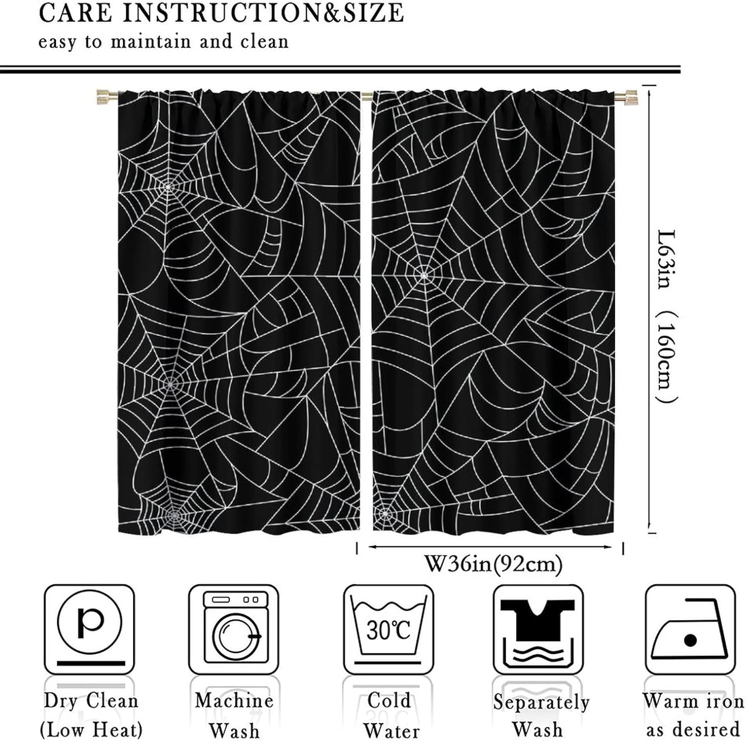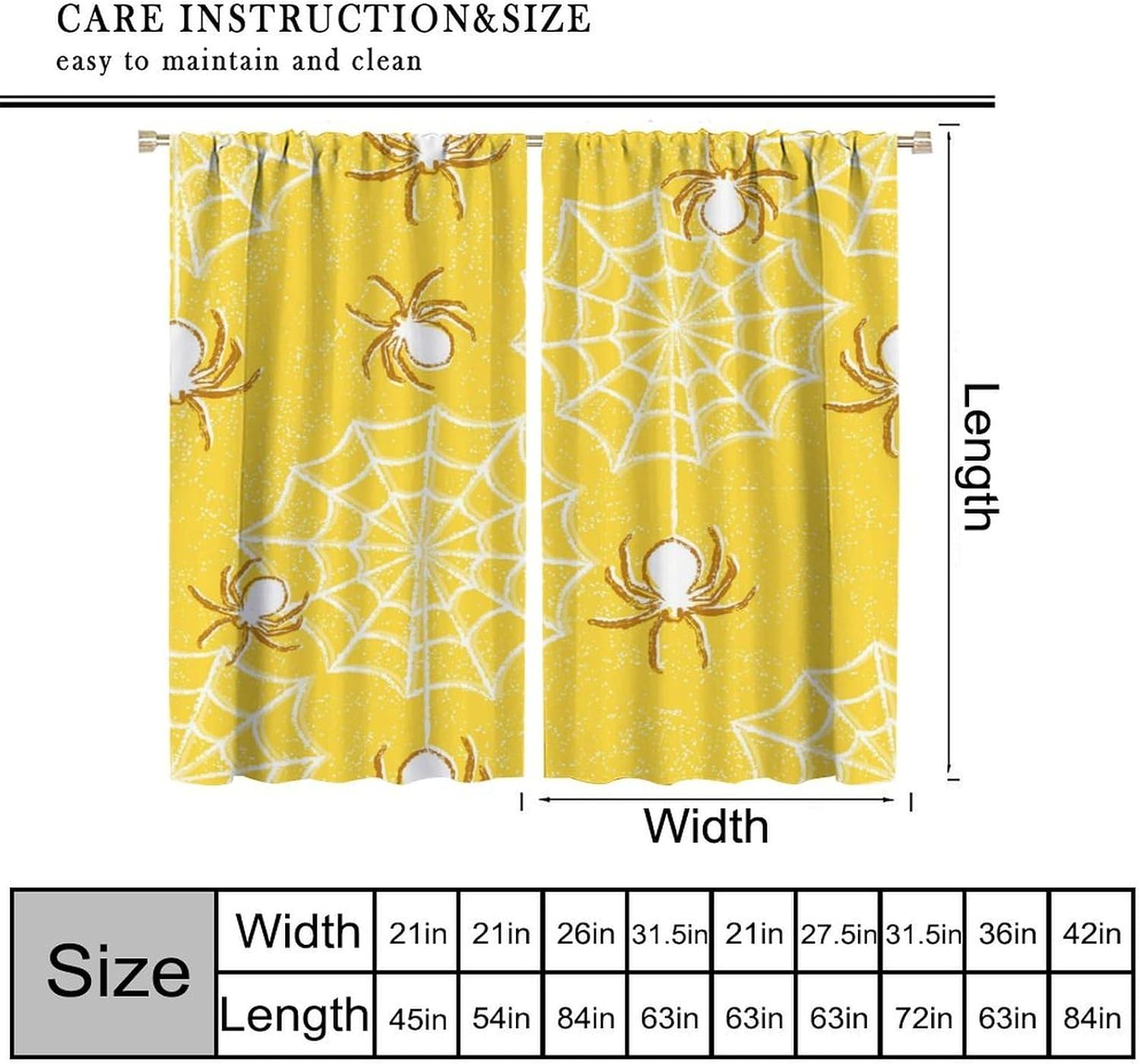 Package included:2 panels per package.Size:One panel measures 21" (W) x 45" (L). The overall size is 42"(W) x 45"(L).One panel piece measures 21" (W) x 54" (L). The overall size is 42"(W) x 54"(L).One panel piece measures 21" (W) x 63" (L). The overall size is 42"(W) x 63"(L).One panel piece measures 27.5" (W) x 63" (L). The overall size is 55" ( W ) x 63" ( L ).One panel piece measures 26" (W) x 84" (L). The overall size is 52" (W) x 84" (L).One panel piece measures 31.5" (W) x 63" (L). The overall size is 63" (W) x 63" (L).One panel piece measures 36" (W) x 63" (L). The overall size is 72" (W) x 63" (L).One panel piece measures 31.5" (W) x 72" (L). The overall size is 63" (w) x 72" (L).One panel piece measures 42" (W) x 84" (L). , The overall size is 84" (W) x 84" (L).About the material:1. Made of fiber polyester fabric.2. High color fastness, no fading even after long term use.3. No chemical coating, no odor, healthier and safer for people, especially for babies and children.About the function.1. It can block out 70%-90% of light and can protect privacy by blocking light or darkening the room.2. It is very suitable for bedroom, living room, kitchen, cafe, office, closet, door, bathroom, dining room, dormitory, nursery, outdoor patio, etc.3. It is also one of the best gifts for family, friends, relatives or yourself.Warm tips:1. Machine washable in cold water.2. The pattern is only on one side, the other side is white.3. Due to manual measurement, please allow 1-2 cm difference.Our service:We focus on 100% customer satisfaction. If you have any questions or problems, please contact us by email, we will reply within 24 hours and provide a satisfactory solution.