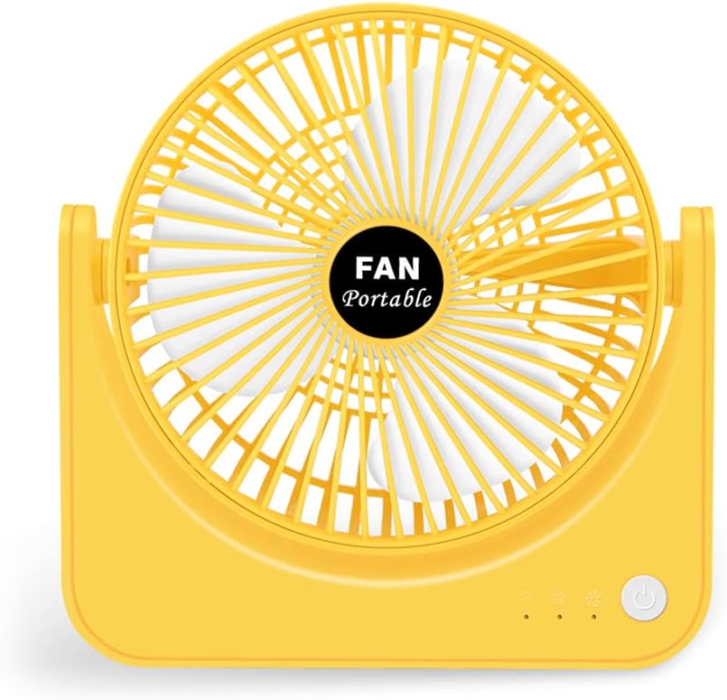 Tabletop Fan Quiet Portable USB Rechargeable Desktop Fan 2000mAh Air Circulator For Head Adjustable For Room DFeatures:and SMALL AND PORTABLE. The electric desktop fan size 7.72'' x 7.72'', small and compact. for Ideal for bedrooms, dining rooms, offices, garages, and dorms.THREE GEAR AND LOW NOISE. This table fan is equiped with 3 turbofan and a brushless motor. Lower noise below 30 decibels while increasing the air volume. 3 speed. Low/natural/strong Gently press the button to adjust different speed.SELF-STANDING TABLE FAN. The adjustable 210° tilt gives you even more control of at your bedside table or office desks. Easily be moved around the home.USB RECHARGEABLE. With a buil-in rechargeable battery. Once fully charged, it will provide almost 5 hours long working for time. Can be charged by laptop, computer, car usb cable, SAFE AND POWERFUL. Porable and Great for travel, school, library, games room, camp, outdoors, Specifications ABS+Electronic ComponentsBattery Capacity: 2000mAh 5V Output Power: 4W 3 Speed: High Low Charging Time: 2-3 HoursWorking Time: 2-5 HoursNoise ≤ 36 A Color White; Yellow Size: Approx. 19.6x19.6cm/7.72x7.72inWeight: Approx. 290gPackage Includes:1 Piece Desktop Fan1 Piece USB Charging Cord1 Piece User ManualNote:1.Please allow 0-1cm error due to manual measurement. pls make sure you do not mind before you bid.2.Due to the difference between different monitors, the picture may not reflect the actual color of the item. Thank you!