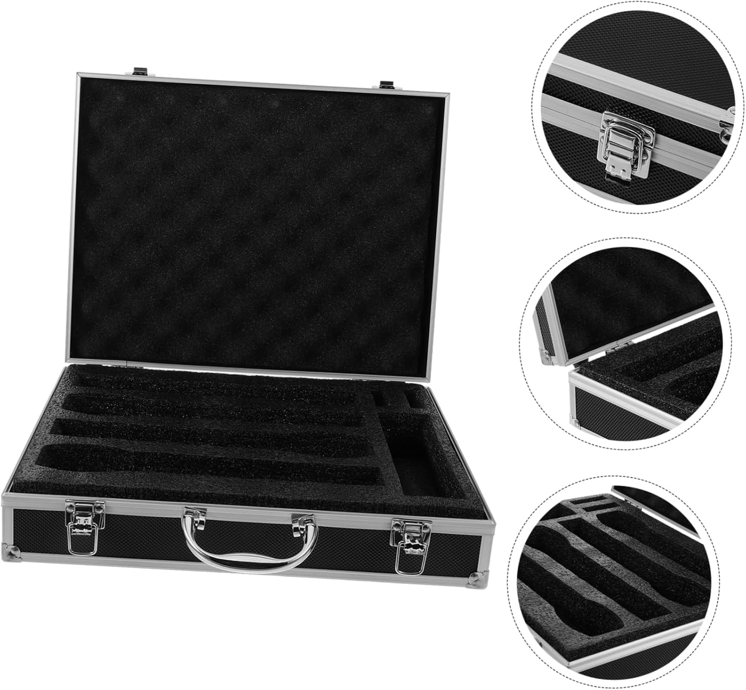 Package List 1 x Microphone Case Features -Note: store 4 microphones each case mic accessories case. -Product Info:Handheld microphone protection box -Material:Aluminum alloy, foam microphone carrying cases -Color:Black lav carry case -Size:36.50X28.50X9.00cm/14.34X11.20X3.54in microphone storage case -Handle design, the microphone case is portable to take, largely save your time and efforts cordless microphone case. -This microphone carrying case can also store various small accessories, such as cables, sponge covers, silicone rings, and more, keeping everything organized and within reach microphone equipment case. -You can confidently use this mic case to carry your microphone anywhere, protected from damage microphone organizer. -Thanks to its good workmanship, this microphone bag is portable, resistant to deformation or breakage, ensuring long-term use mic carrying holder bag. -Whether you're traveling or place to store your microphone, this microphone case provides effective cushioning against accidental drops microphone case with handle.Goods Informationmicrophone equipment case Whether you practical storage case for your microphone or want to protect it from external damage when you're outdoor, this microphone carrier case is the perfect choice.microphone storage organizer Simply use this mic case to carry your microphone and accessories, providing added convenience and peace of mind