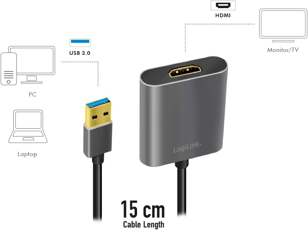 With a speed of 10 times faster than USB 2.0, the USB 3.0 screen adapter offers greater bandwidth and a high-resolution video solution to connect an additional screen to your computer via plug and play. The adapter works like an external video card powered by USB and provides additional graphics performance without the hassle of opening the computer case.