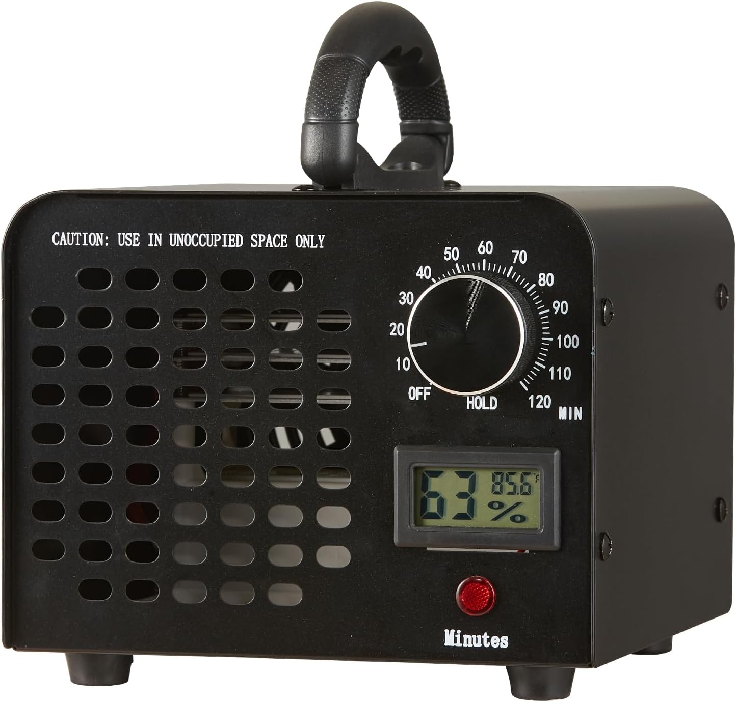 • Intelligent Timing Control: This commercial ozone generator machine comes with humidity display and 0-120 minute timer function. You can customize the required operating time for up to 120 minutes, and use the "HOLD" mode to keep it working continuously.