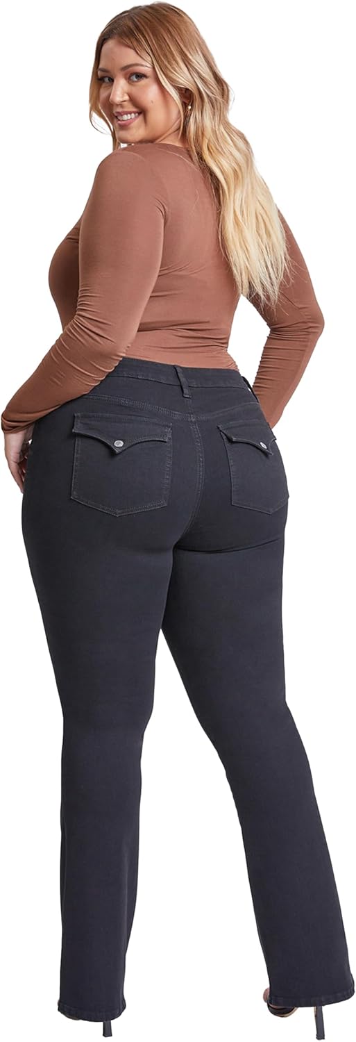 Elevate your wardrobe with the Women's Plus Size Sustainable Mid Rise Boot Cut Jeans—where style meets eco-conscious design